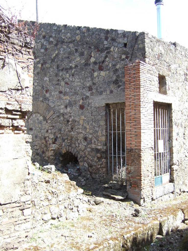 Looking east from VII.3.28 along front façade, with doorway to steps at VII.3.27, and window at VII.3.26.