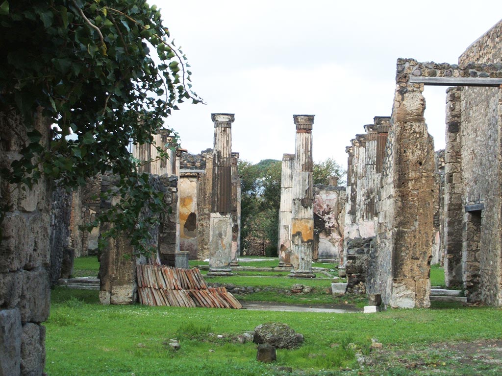 the south-east corner of the atrium with remains of wall decoration after 62AD