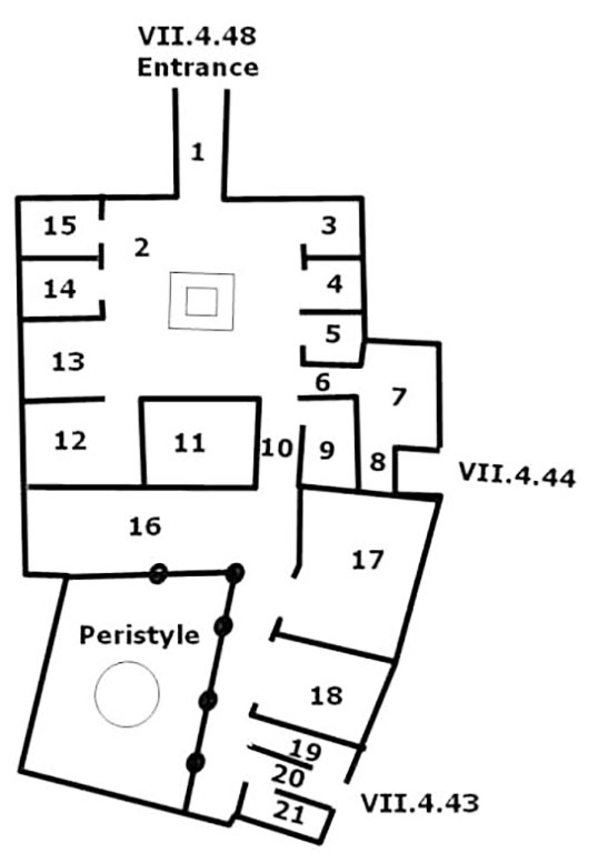 The room numbers are those referred to on the pompeiiinpictures pages for VII.4.48.