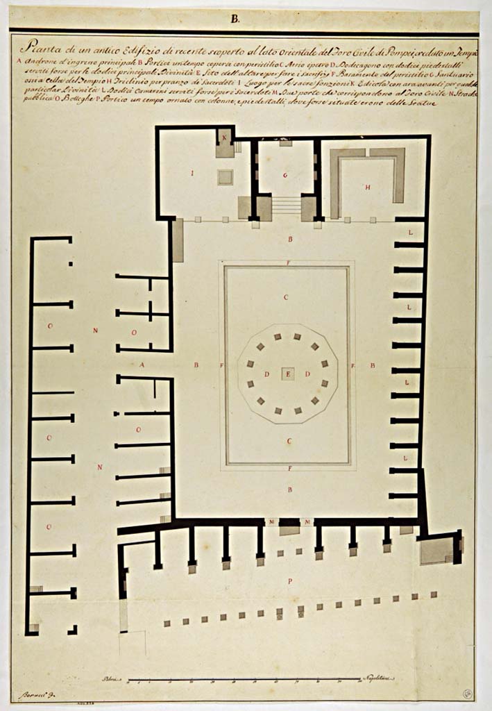 VII.9.7/8 Pompeii. Drawing by Antonio Bonucci, c.1822, of “plan of an ancient building recently excavated on east side of Forum thought to be a Temple”.