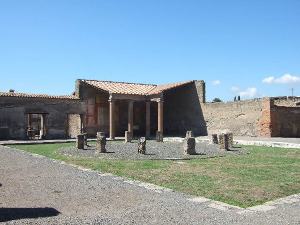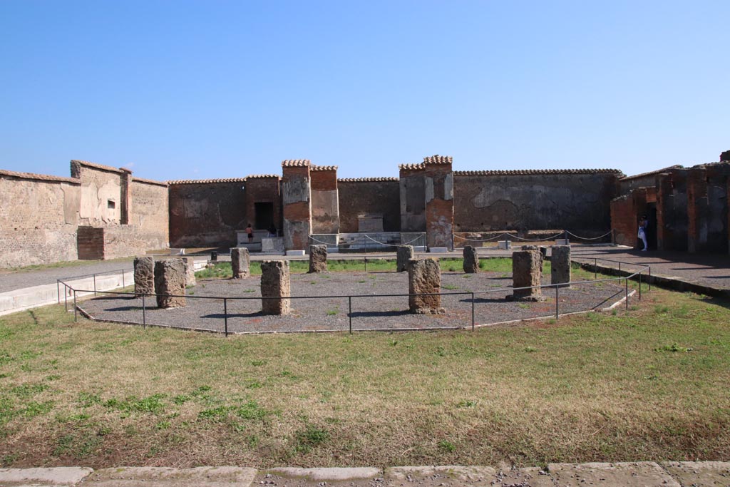 VII.9.7/8 Pompeii. August 2021. Looking towards north-west corner of portico.