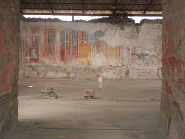VIII.2.23 Pompeii. May 2005. South wall of peristyle from entrance corridor.