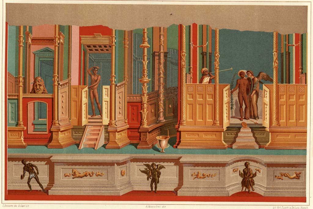 VIII.2.23 Pompeii. Painting by Discanno, showing detail of painting on the south wall, at the east end.