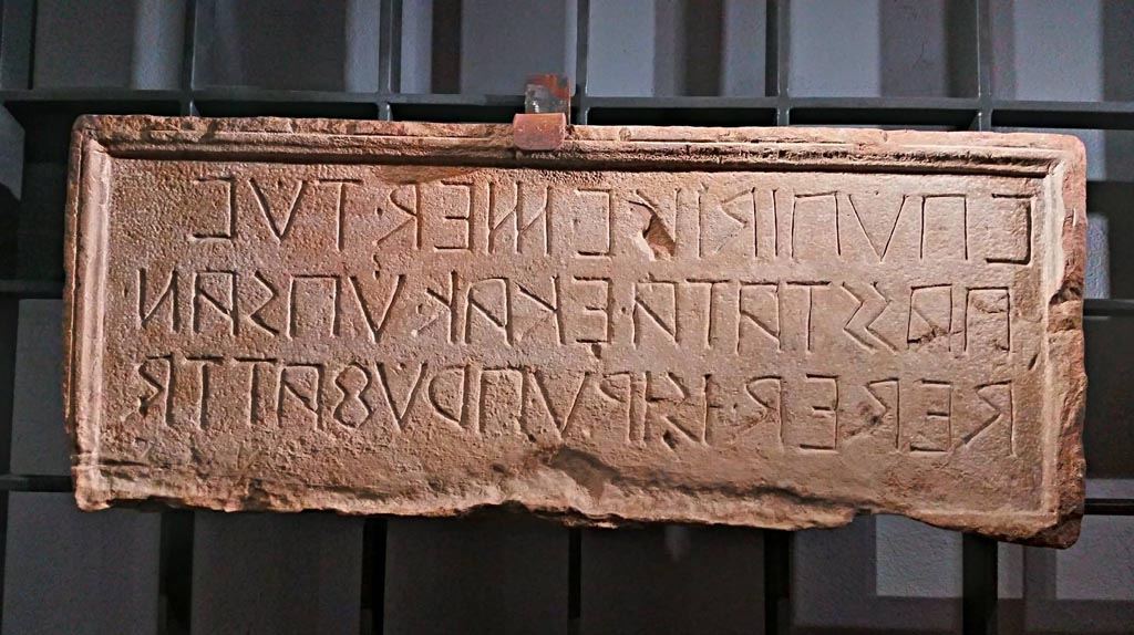 Popidio on limestone block found outside in Via dell’Abbondanza, 1838, written