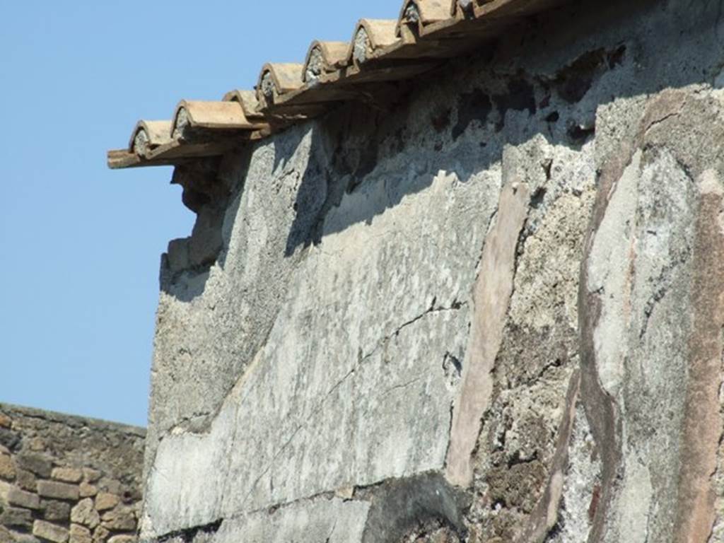 VIII.4.15 Pompeii. March 2009. Upper section of remains of plaster on east wall of entrance fauces.