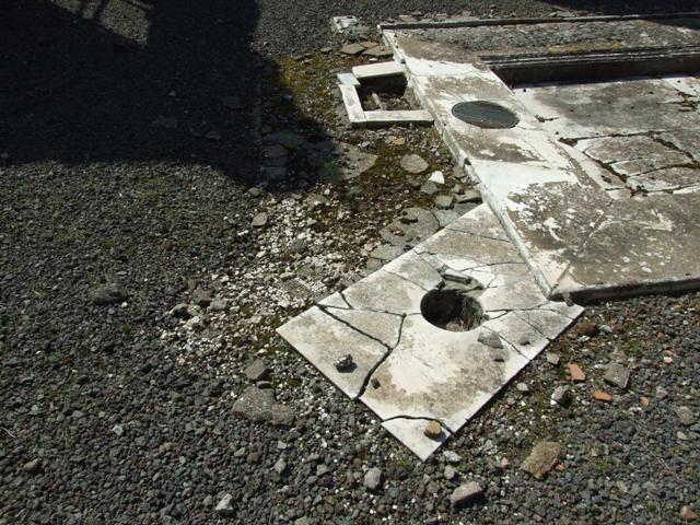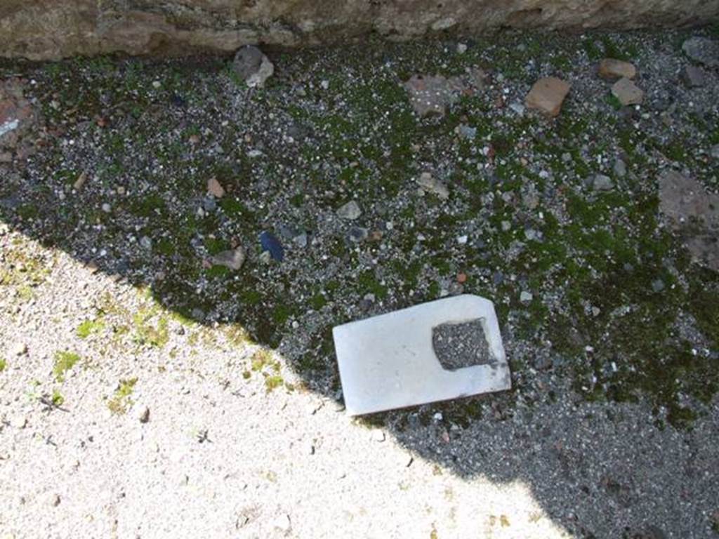 VIII.4.15 Pompeii. March 2009. White marble door fitting, in floor of entrance fauces.