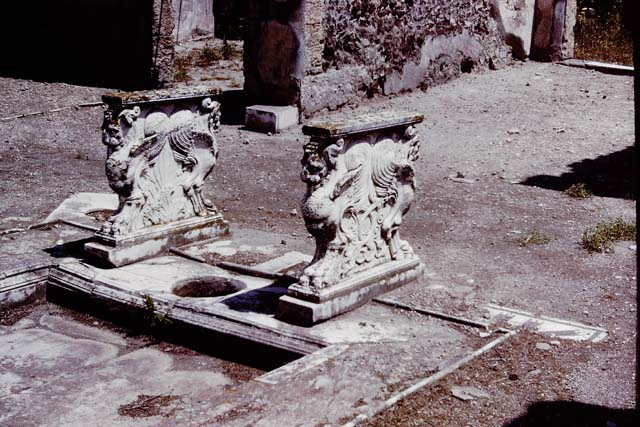 VIII.4.15 Pompeii. December 2007. Griffins on supports for a marble table or cartibulum. Now in Naples Archaeological Museum.