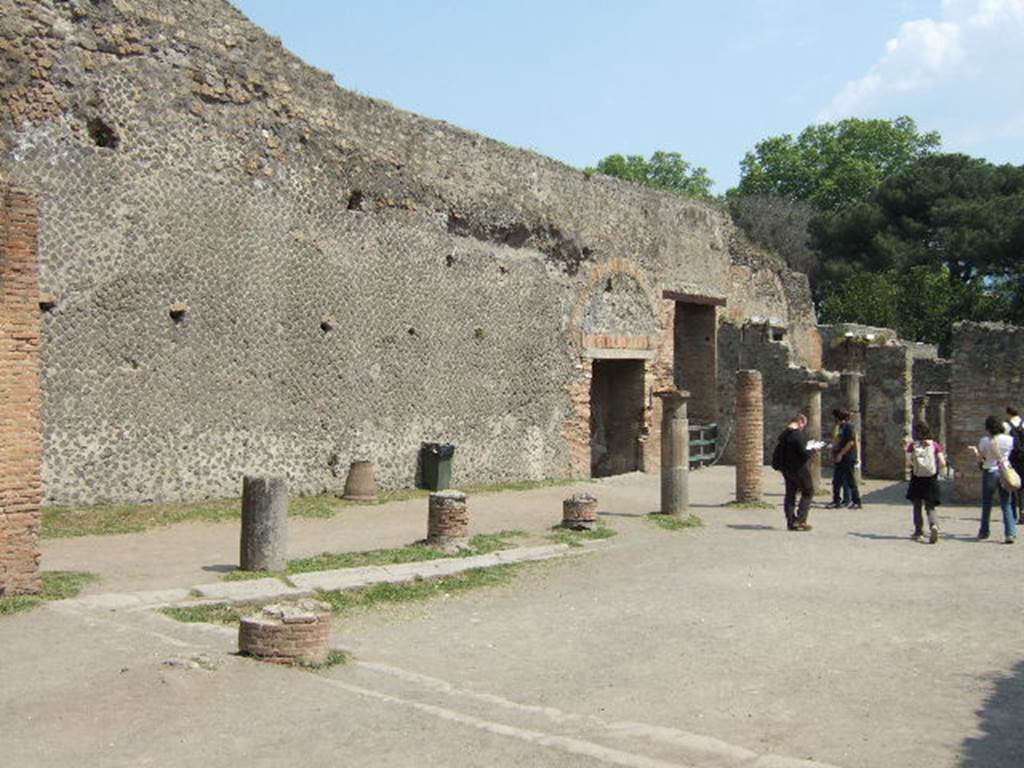 VIII.7.20 Pompeii. May 2006. East side. Looking south past the area near the stage, towards the Gladiators Barracks.