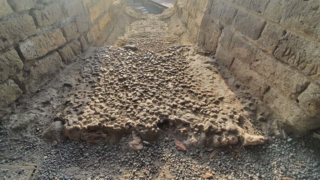 VIII.7.21 Pompeii. August 2021. Looking west along ramp from entrance doorway.
