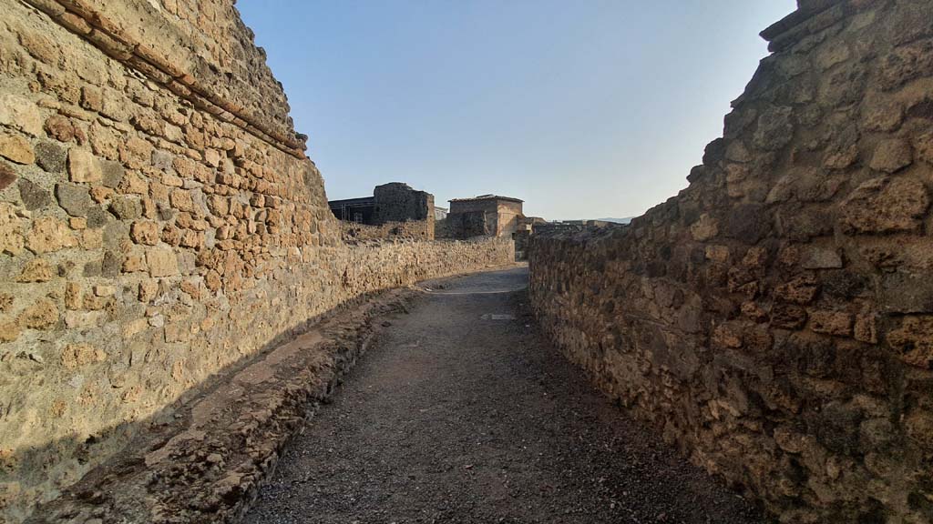 VIII.7.21 Pompeii, August 2021. Looking south-west on west side of Via Stabiana, with entrance doorway, on right.