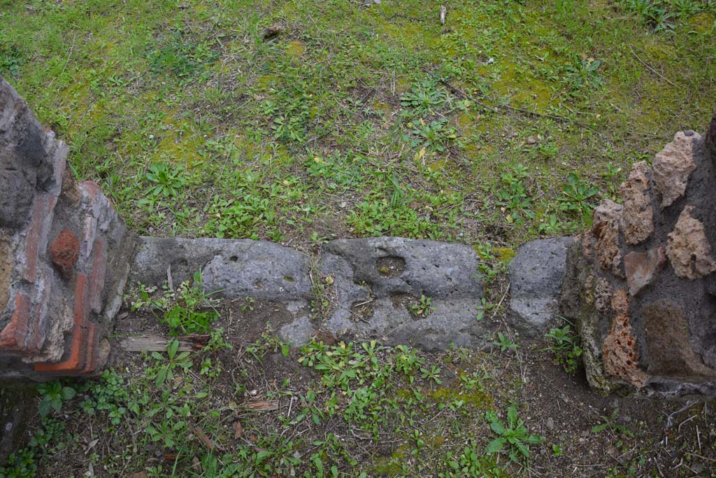 Pompeii. March 2018. Room “h”, detail of doorway threshold.