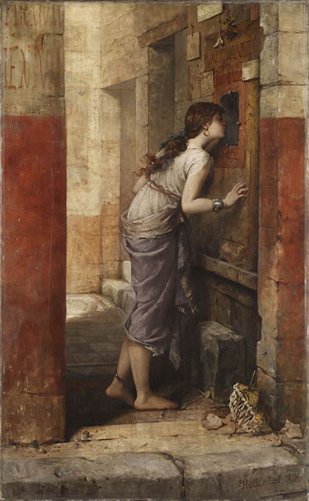 IX.7.19 Pompeii. 1885. Painting of entrance doorway shortly after excavation.