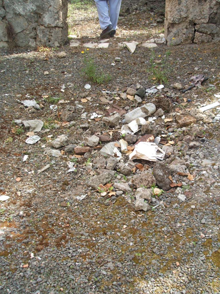 Looking west across site of impluvium in atrium towards entrance doorway on Vicolo di Tesmo