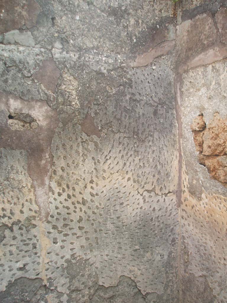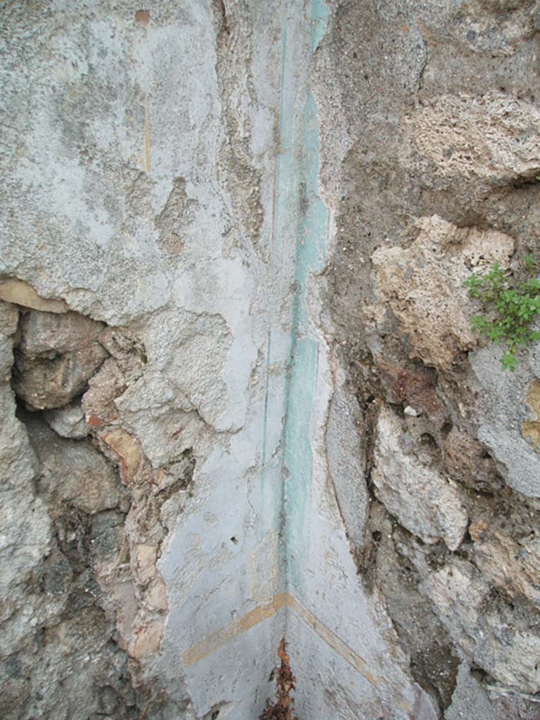 IX.7.19 Pompeii. May 2005. Room g, remains of wall plaster in triclinium.