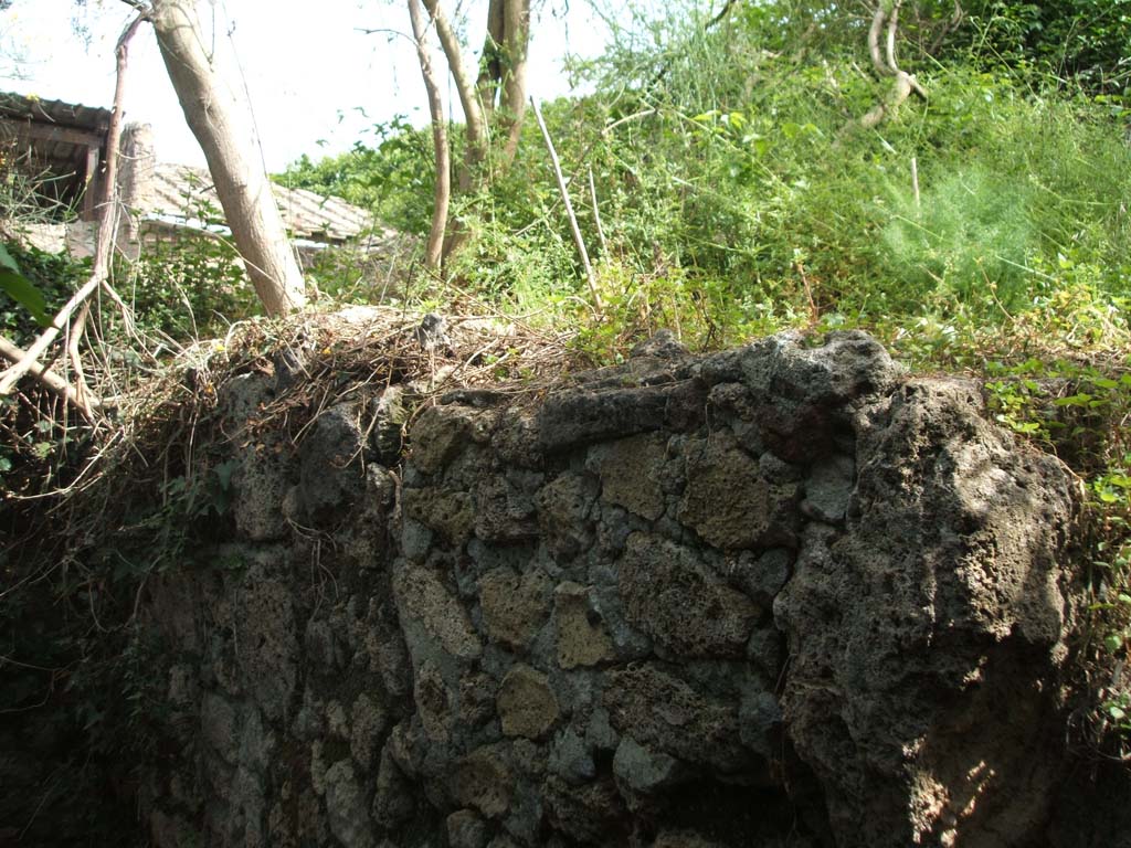Looking north from rear of Casina dell’Aquila towards a wall emerging from the unexcavated on south side of area 8.