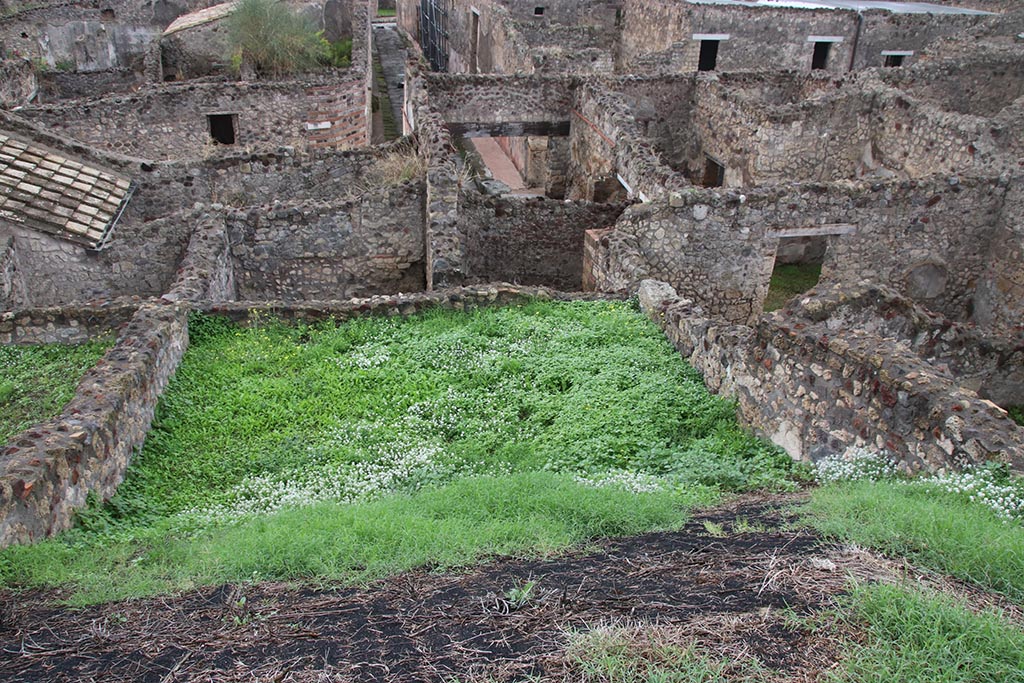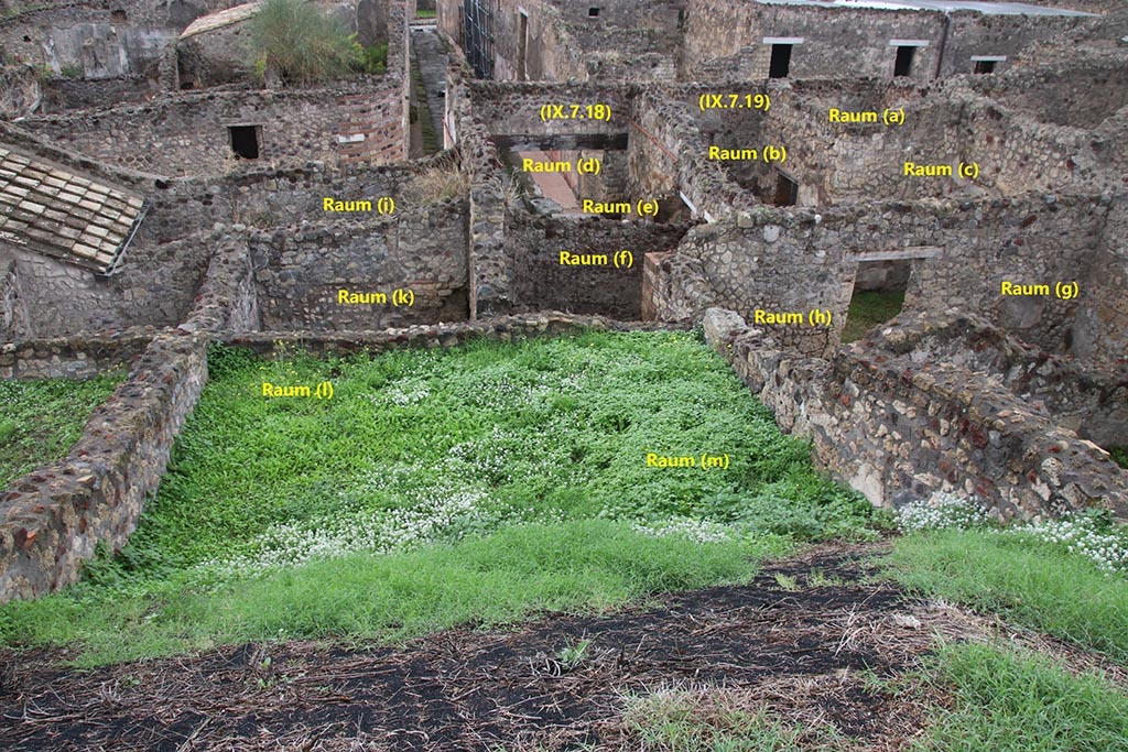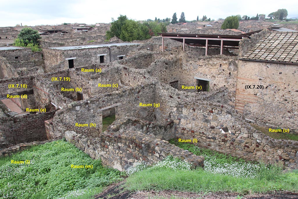 Looking north-west from rear. The rooms on the right, (u) and (v) are part of IX.7.20.