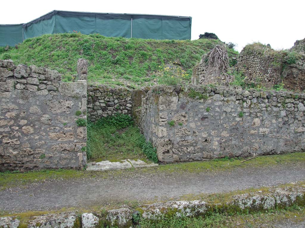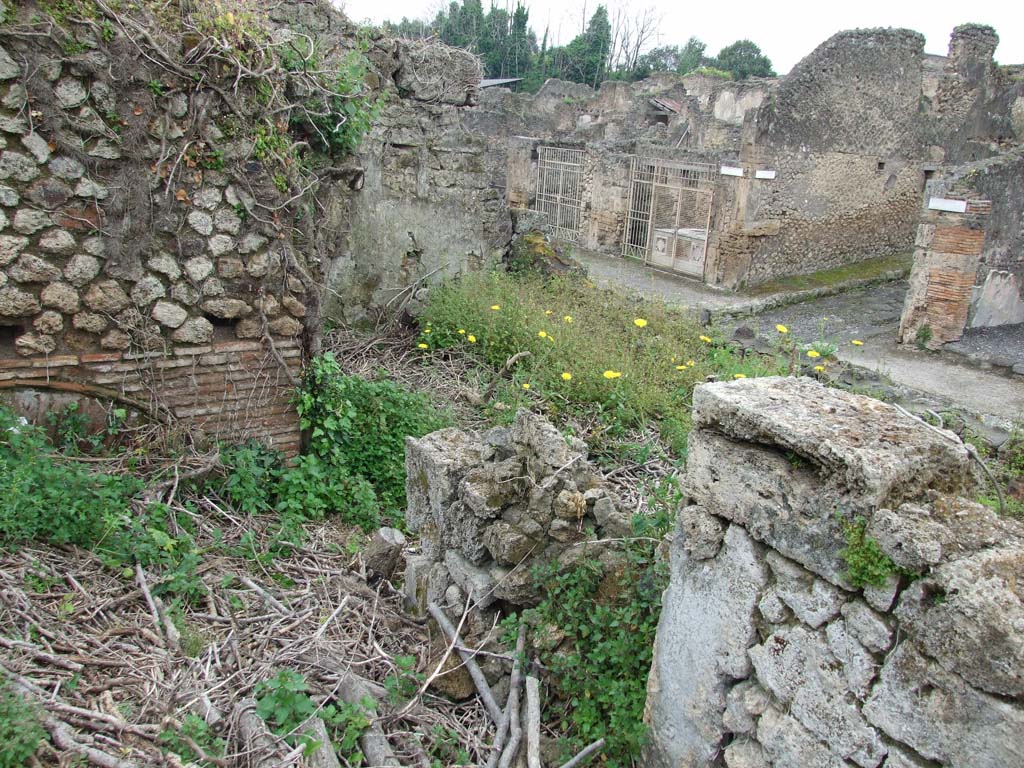 Entrance fauces 1, cubiculum 3 and bred making room 4 and oven 7a are partly visible on the left of the Via di Nola. Photo courtesy of Rick Bauer.