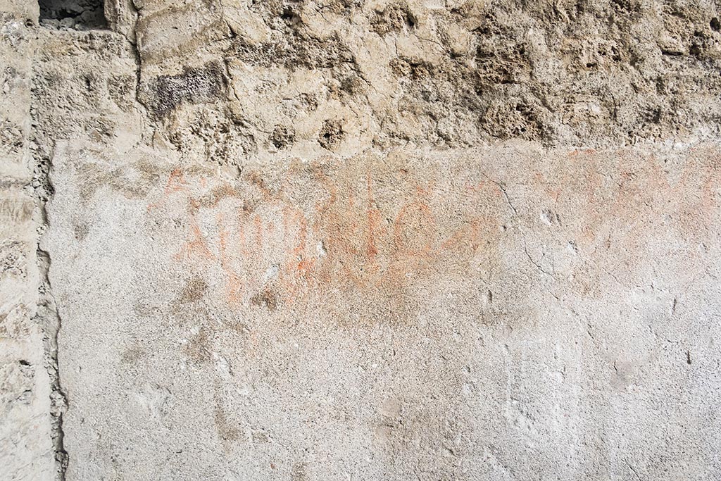 House with entrance from the 1st doorway on the north side, counting from the north-west, in the cubiculum to the right of the entrance corridor, on white plaster, one could read a graffito in elegant letters.