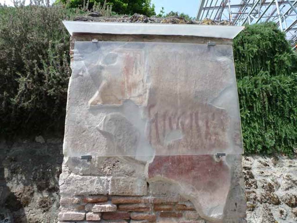 Pompeii. May 2010. Graffiti on front pilaster between IX.11.7 and IX.11.8.