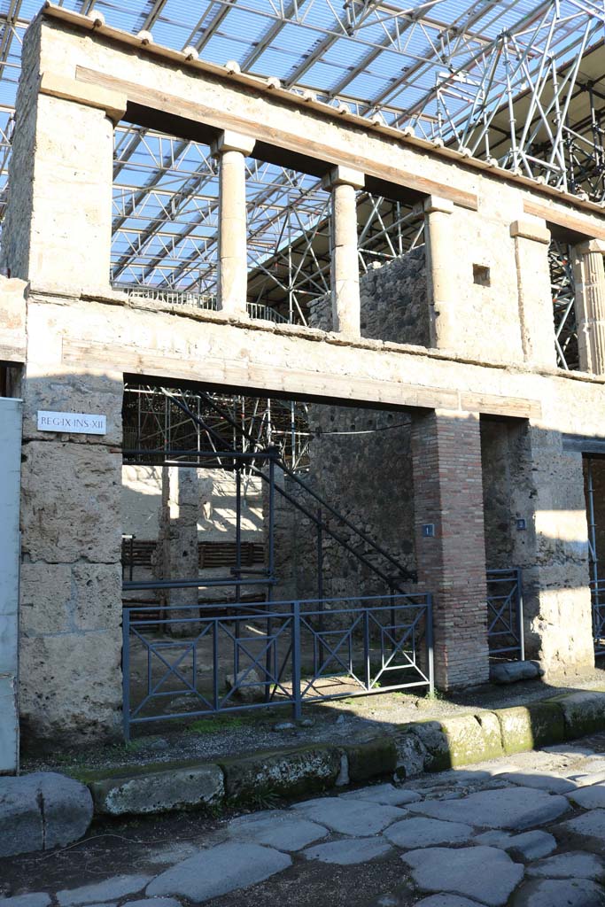 IX.12.1 Pompeii, in centre. October 2022. Looking north-east to front façade of the insula IX.12. Photo courtesy of Klaus Heese.