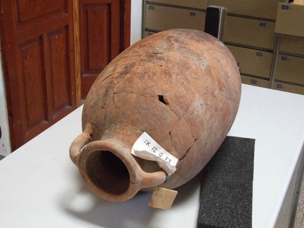 IX.12 Pompeii. Amphora found in the vicolo to the west of the House of the Chaste Lovers.