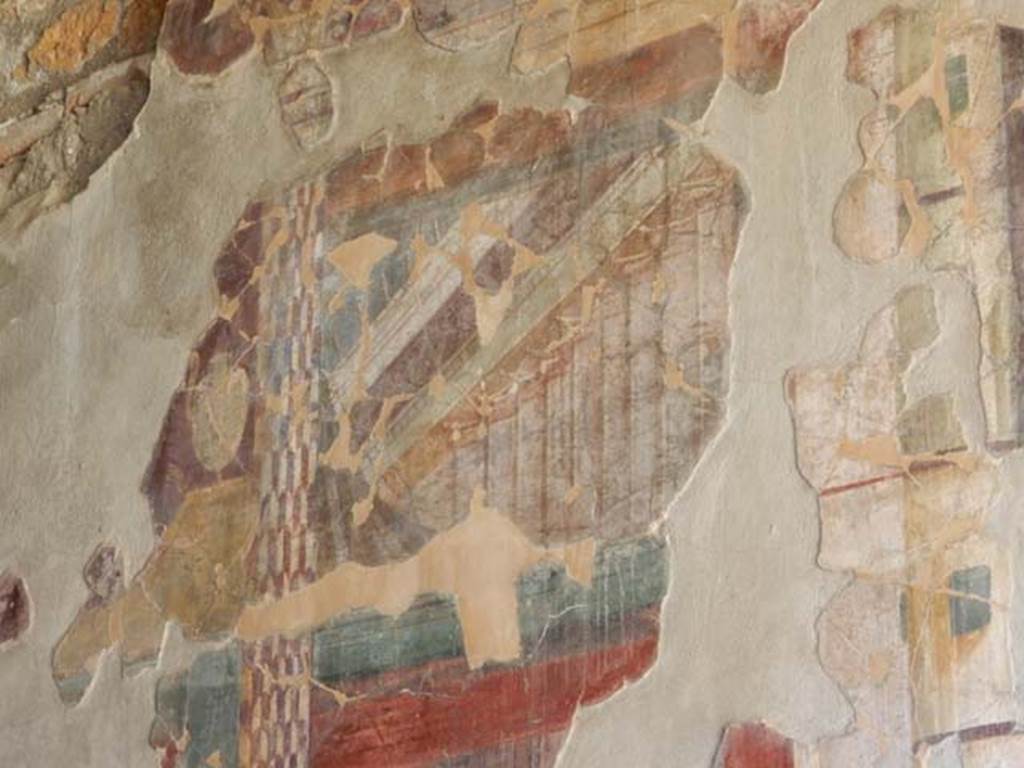 IX.14.4 Pompeii. July 2024. Room 3, detail from upper centre of east wall. Photo courtesy of Johannes Eber.