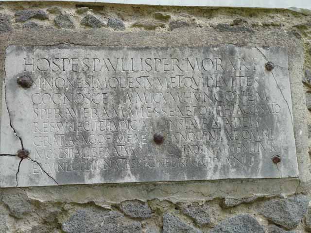 Pompeii Porta Nocera. May 2010. Tomb 23OS. Plaque, in Latin, on front of tomb with a warning to passers-by.
