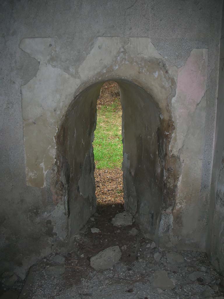 South-west corner of room on lower floor, with arched doorway. Photo courtesy of Ivo van der Graaff.