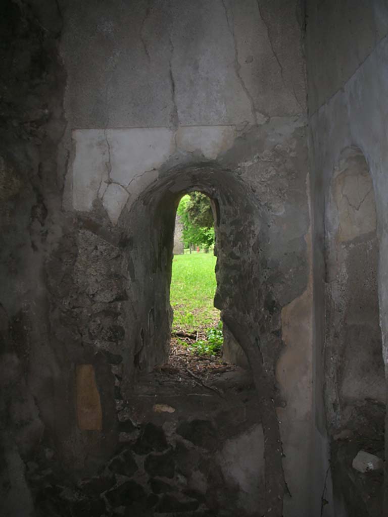 Arrow slit window in north-west corner on west wall. Photo courtesy of Ivo van der Graaff.