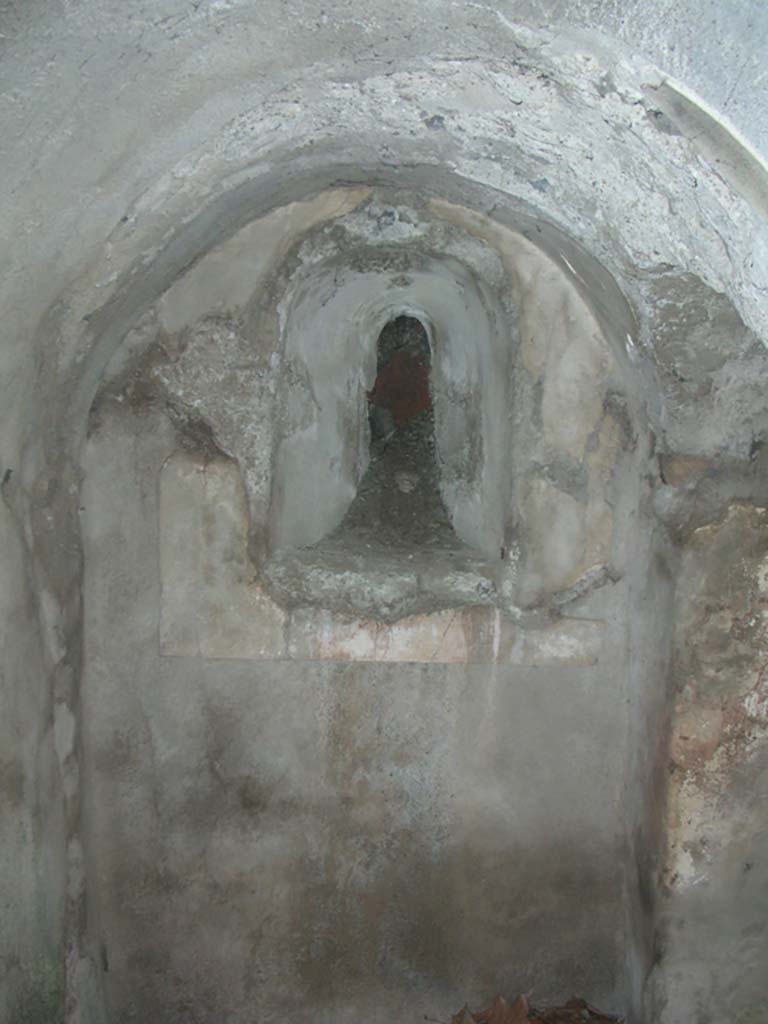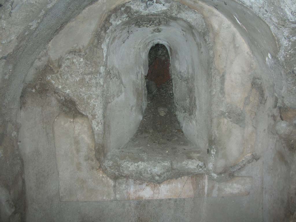 Tower X, Pompeii. May 2010. Detail of filled in window. Photo courtesy of Ivo van der Graaff.