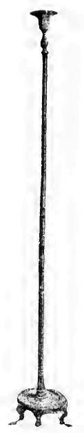 A bronze candelabra, finely worked, inlaid with silver in the goblet and in the plate above, as well as in the circular base