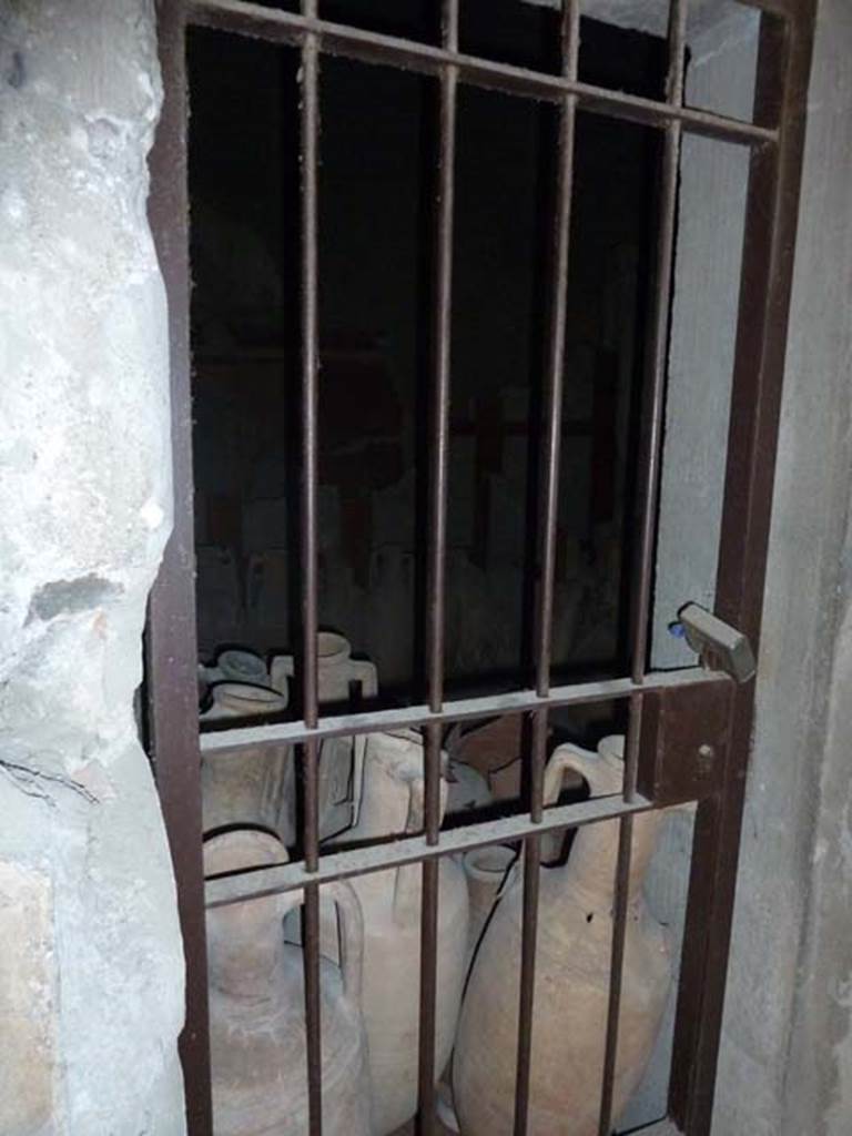 Oplontis, September 2015. Room 25, doorway in west wall leading to room 22, with amphorae.