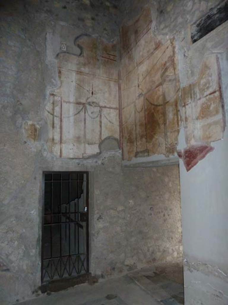 Oplontis Villa of Poppea, September 2015. Room 27, remains of painted panel above doorway to room 1.