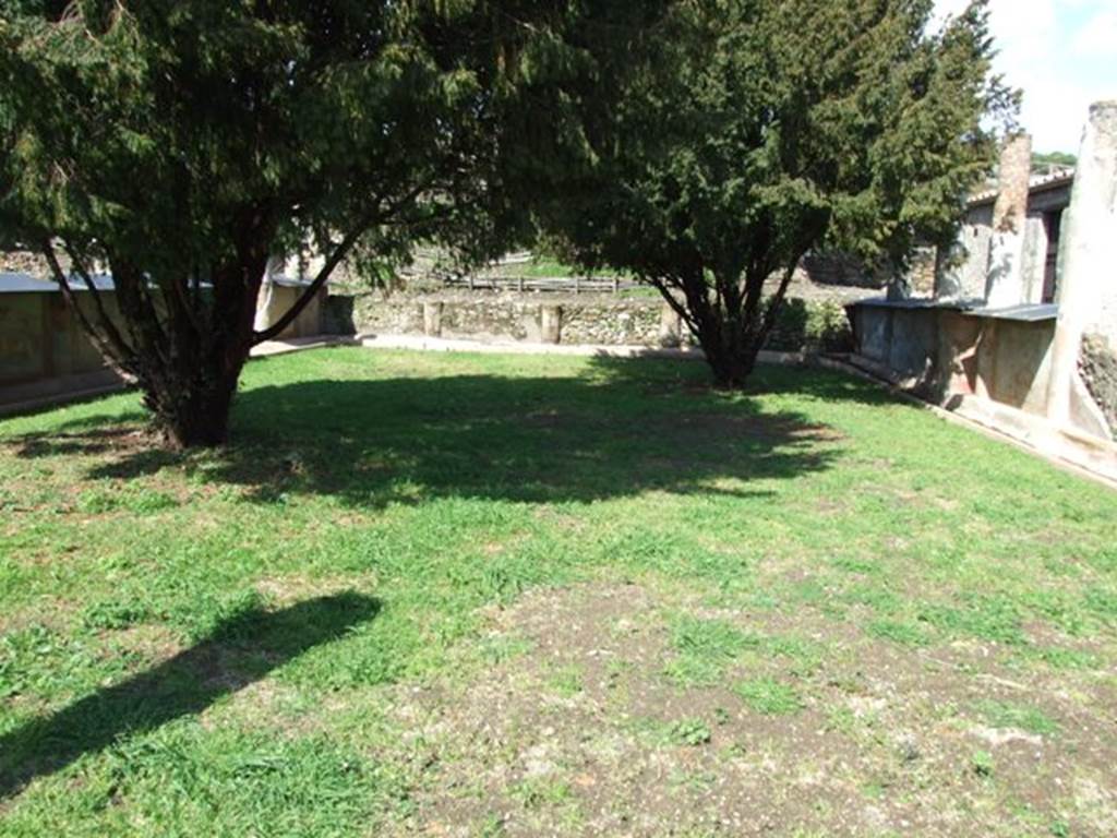 V.5.3 Pompeii. March 2009. Looking north-east along remains of inner side of painted east wall of room 7, the peristyle.